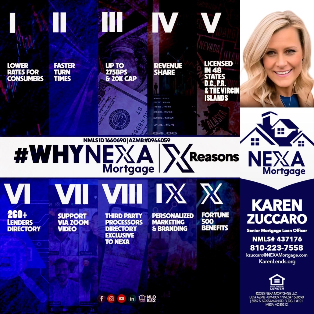 Hi, my name is Karen Zuccaro. I’m a Loan Officer with NEXA Mortgage LLC., offering personalized mortgage solutions, fast customized quotes, great rates and service with integrity.